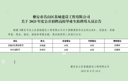 雅安市名山區(qū)茶城建設(shè)工程有限公司系雅安市名山區(qū)區(qū)屬一級(jí)國(guó)有企業(yè),成立于2018年10月,注冊(cè)資本金25000萬(wàn)元,主要經(jīng)營(yíng)范圍為對(duì)土地、城市資源等領(lǐng)域及保障性住房、房地產(chǎn)開(kāi)發(fā)、城市基礎(chǔ)設(shè)施、公共服務(wù)設(shè)施等進(jìn)行經(jīng)營(yíng)管理;并開(kāi)展項(xiàng)目投資、工程管理服務(wù)、園林綠化、環(huán)境治理工程、土地整理和各類工程建設(shè)活動(dòng)等。根據(jù)公司2023年人員招聘計(jì)劃,茶城公司擬面向社會(huì)公開(kāi)招聘3名工作人員?,F(xiàn)將有關(guān)事項(xiàng)公告如下:一、報(bào)名條件(一)招錄崗位、名額及招錄資格條件(見(jiàn)附表)(二)基本條件1.本科及以上學(xué)歷、學(xué)士及以上學(xué)位。包括2023年應(yīng)屆高校畢業(yè)生;2022年、2021年未參加工...