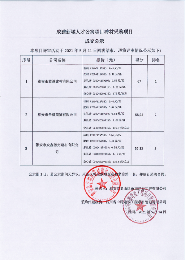 雅安市名山區(qū)茶城建設工程有限公司關于皇茶大道安置房項目、槐溪慧谷北大附中安置房項目結算公告...