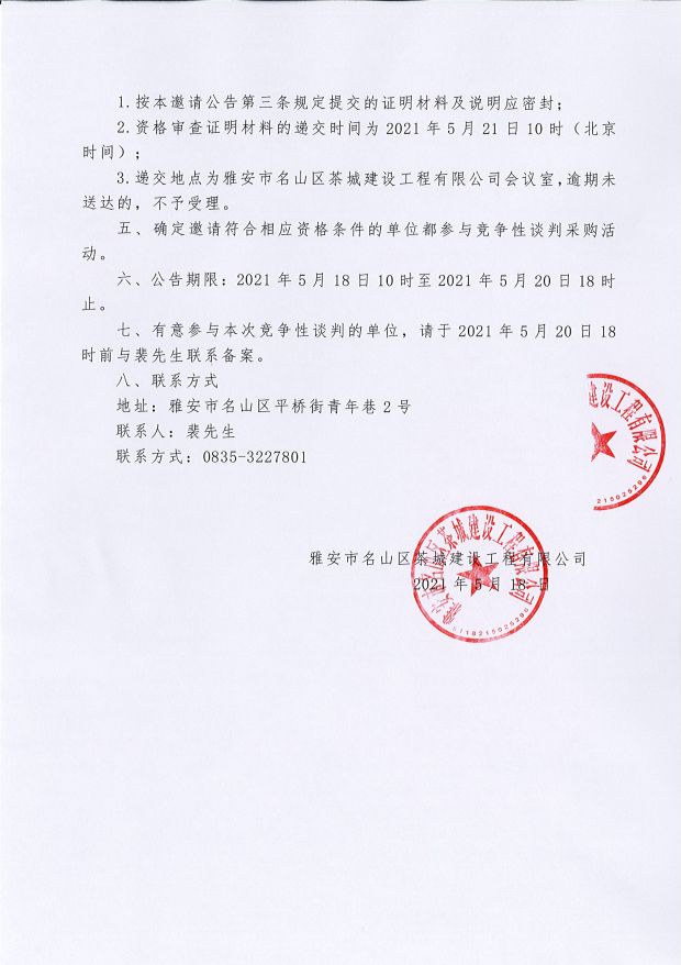 雅安市名山區(qū)茶城建設工程有限公司 關(guān)于公開招聘高校畢業(yè)生總成績排名及體檢、考察事宜的公告...